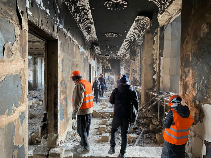 По данным ведомства, на данный момент внутри здания проводится расчистка помещений от последствий пожара. На это уйдет около двух-трех дней. В работе задействованы около 20 частных строительных компаний, которые вызвались бесплатно предоставить свою помощь.