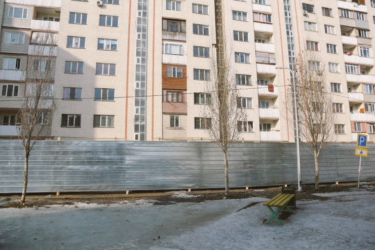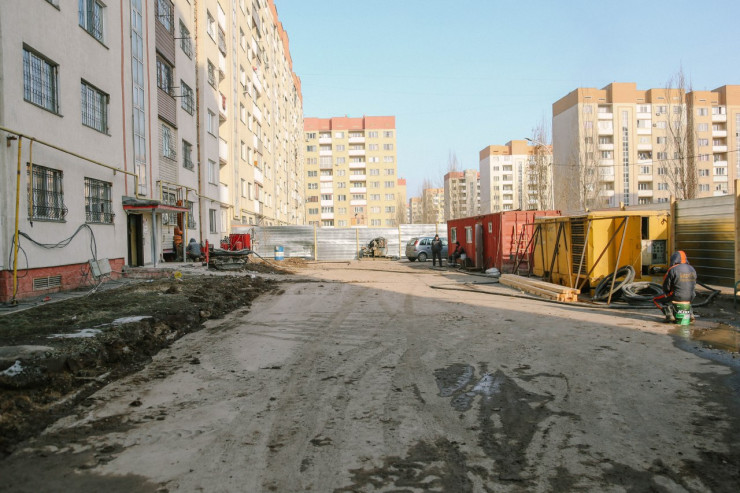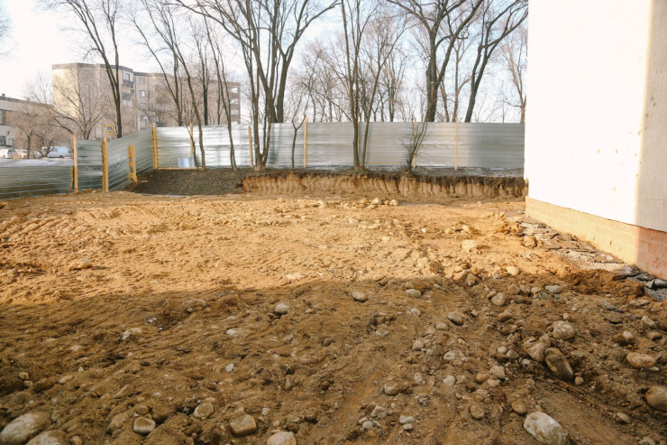Вся земля вокруг дома перекопана, все росшие рядом деревья пересажены подальше от многоэтажки.