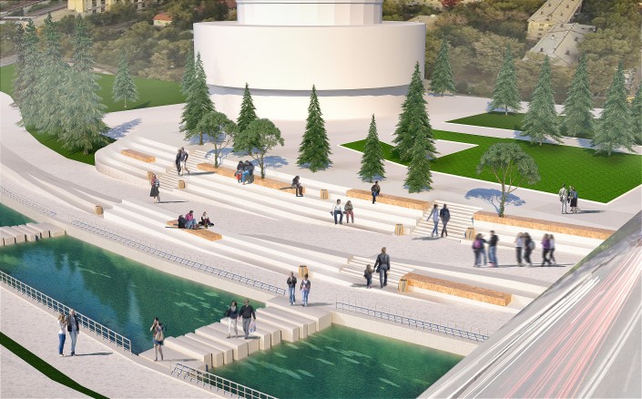 Проект преобразования жилищно-гражданских объектов по набережной реки Малая Алматинка (от Дворца Республики до улицы Гоголя). Участок - свыше 2 километров. Площадь благоустройства - 139 021 квадратный метр. Площадь озеленения - 44 870 квадратных метров