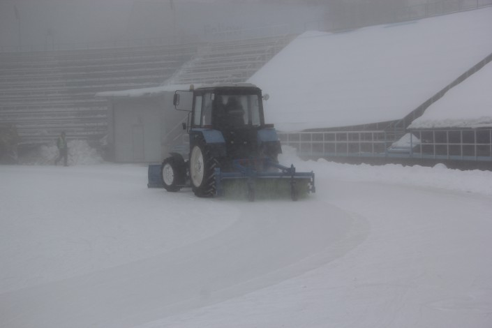По словам работников катка, лед заливают горячей водой, так как она быстрее замерзает, чем холодная. Воду для этих целей берут с центральной фильтровальной станции, которая находится чуть выше стадиона. Но перед заливкой вода на холодильной станции проходит несколько этапов очистки.