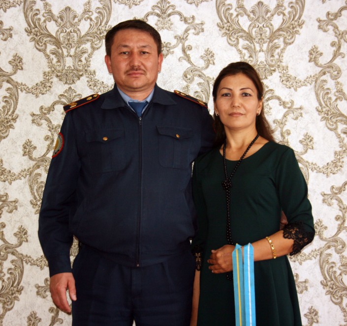 Со своей супругой Хадишой познакомились в 2000 году. Сначала дружили и общались, а потом, рассказывает полицейский, случилась любовь и начался цветочно-конфетный роман. Теперь вместе с любимой женщиной воспитывают 11 детей. Самому старшему сыну 16 лет, а младшей дочке – 4,5 года. Дети станут главными "продолжателями" полицейской династии, смеется Бауыржан. "И дочки, и сыновья хотят стать полицейскими. Только одна дочка мечтает стать врачом. Остальные хотят служить родине. Я, конечно, рад такому решению детей и всех поддержу", - не без гордости рассказывает глава семьи.