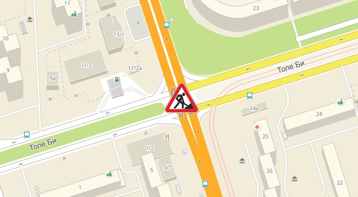 - с 21 по 23 июля - пересечение улиц Момышулы и Толе би. Меняется схема движения следующих автобусов: