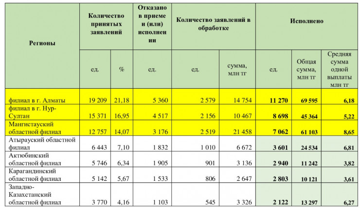 Еще более 14 тысяч заявлений почти на 73,7 миллиарда тенге находятся в обработке. Около 26,3 тысячи заявок были отклонены в связи с несоответствием требованиям законодательства.