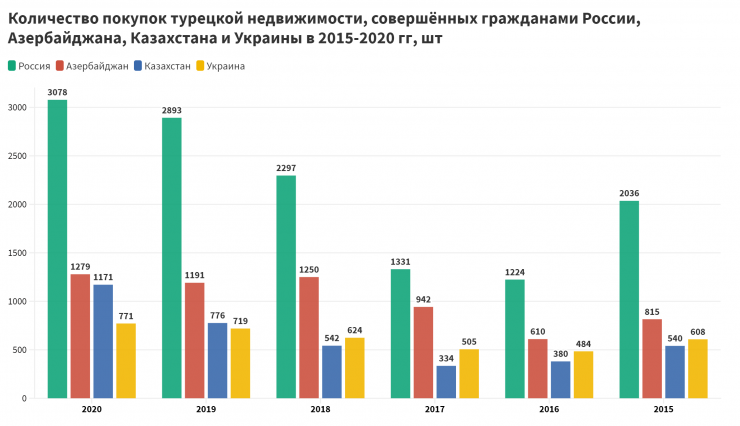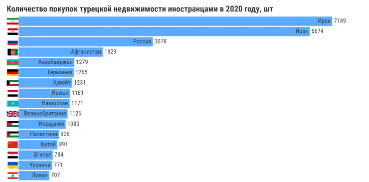 Россияне, азербайджанцы и казахстанцы вошли в десятку самых активных покупателей недвижимости в Турции. Источник: Институт статистики Турции