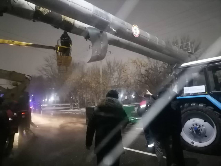 По данным акимата, прорыв трубопровода произошел из-за водителя КамАЗа, который перевозил конструкцию башенного крана и допустил повреждение наружной магистральной трассы теплоснабжения. Авария произошла в районе Сарыарка, возле здания по адресу Дукенулы, 30.