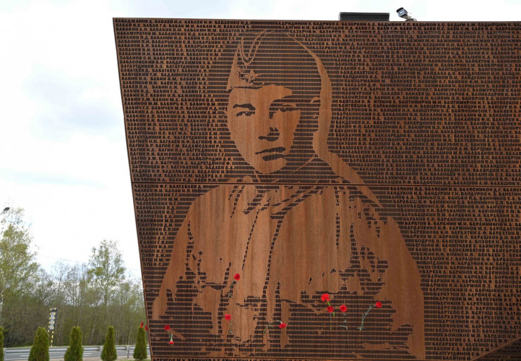 Скульптура солдата из бронзы высотой около 25 метров установлена на насыпном десятиметровом кургане. На стальных плитах увековечены имена защитников Отечества.