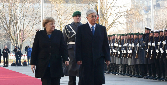 Касым-Жомарт Токаев и Ангела Меркель тепло поприветствовали друг друга и совершили обход роты почетного караула. Затем состоялось представление членов официальных делегаций обеих стран.