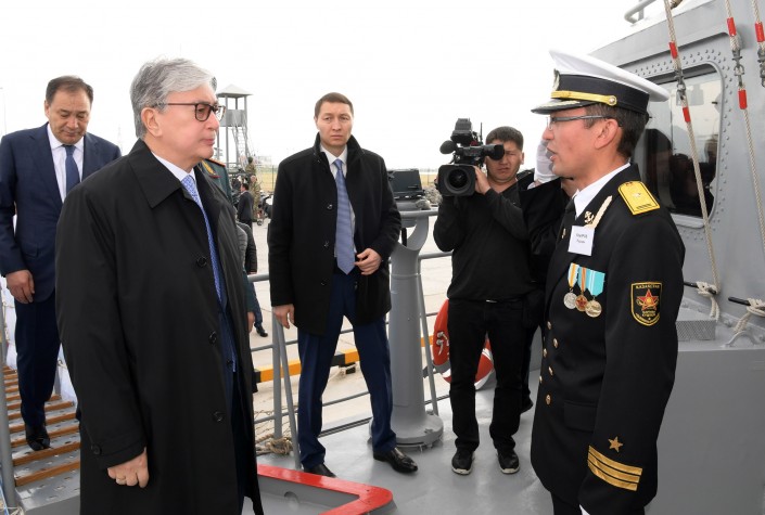 Кроме того, Президент Казахстана осмотрел ракетно-артиллерийский корабль "Маңғыстау", а также ознакомился с образцами военной техники, вооружения и экипировки Военно-морских сил Министерства обороны Республики Казахстан.