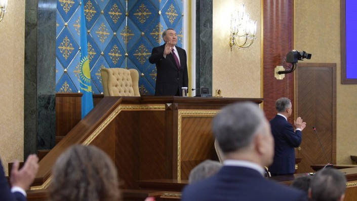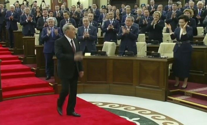12.03 Первого Президента Нурсултана Назарбаева встречают аплодисментами.