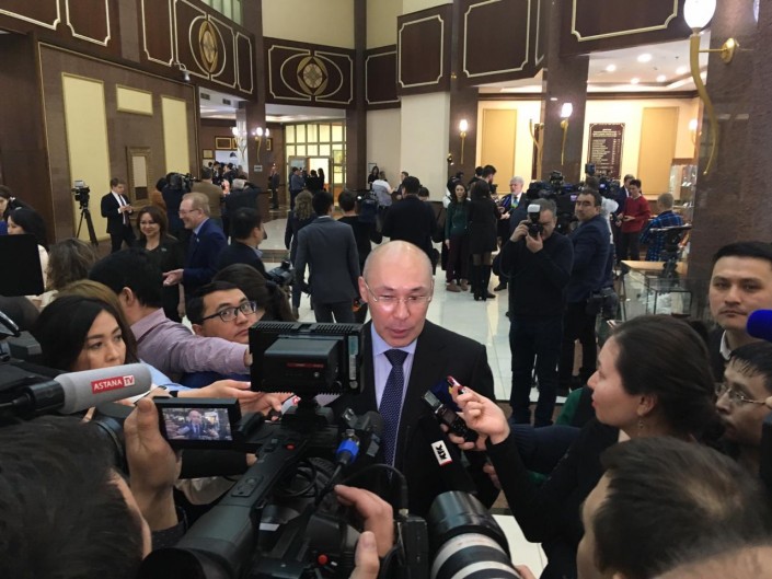 11.30 Главу МФЦА Кайрата Келимбетова спросили о том, как он воспринял заявление Нурсултана Назарбаева об прекращении полномочий.