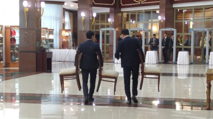9.50 В здании Мажилиса, где пройдет совместное заседание палат Парламента и принесение присяги, идут приготовления.