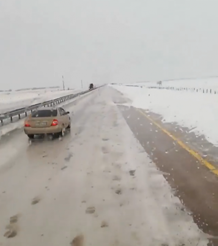 На другом видео водитель предупредил, что на трассе Нур-Султан - Караганда сильный гололед, автомобили едут со скоростью 20-30 километров в час. Однако неизвестно, когда именно было снято видео.