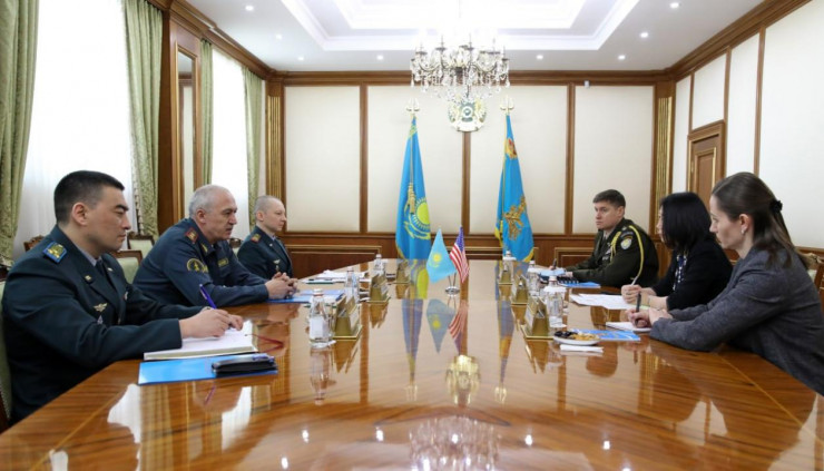 В военном ведомстве состоялась протокольная встреча министра обороны Казахстана генерал-лейтенанта Руслана Жаксылыкова с временным поверенным в делах США в Казахстане Джуди Куо.