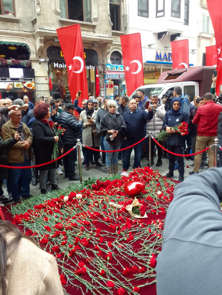 На следующий день женщина прибыла на улицу Истикляль, где произошел взрыв. Именно в районе вчерашнего теракта наблюдается большое скопление людей. Непосредственно место трагедии оцеплено ограждением. Жители и гости Стамбула возлагают красные гвоздики на месте взрыва.