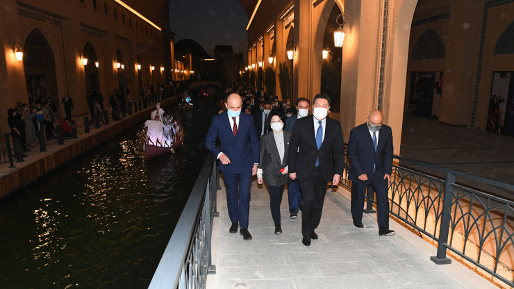 В церемонии открытия "Керуен-сарая" приняли участие премьер-министр Аскар Мамин, аким Туркестанской области Умирзак Шукеев, министр культуры и спорта Актоты Раимкулова, а также представитель компании-инвестора Куанышбек Кудайберген.