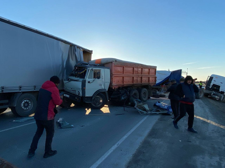 Казахстанские грузовики попали в массовое ДТП в России, передает корреспондент Tengrinews.kz.