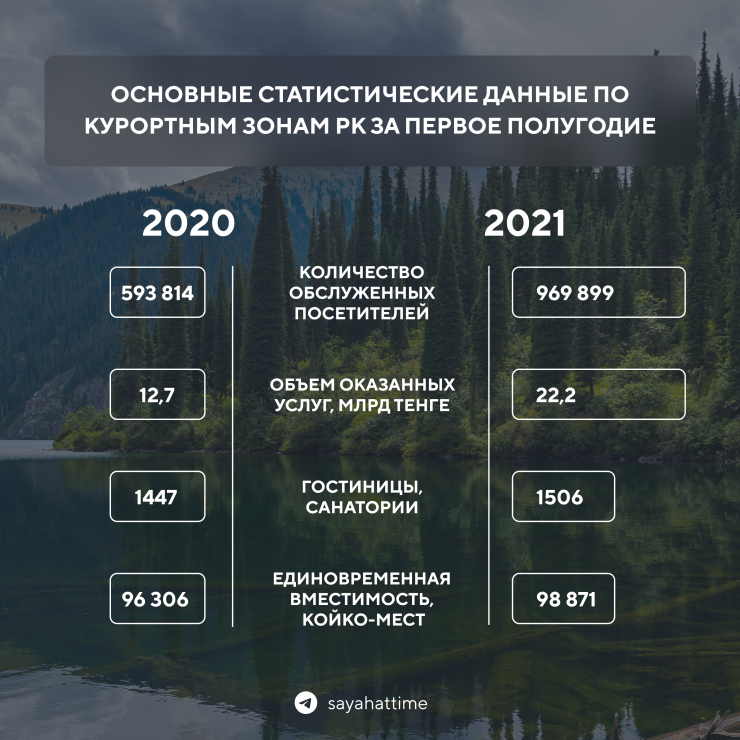 За первое полугодие 2021 года казахстанские курорты заработали 22,2 миллиарда тенге, передает LS.