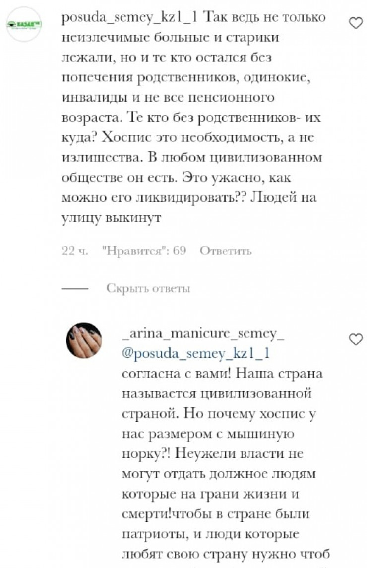 Казахстанцев взволновали слухи о закрытии единственного в Семее хосписа Фото:instagram.com/semey_zhaloby2