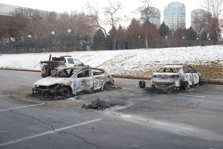Ал Алматының әр ауданында түнде мыңдаған адам шеруге шыққан. Наразылық акциясына шыққандар полицейлердің көлігін өртеген.