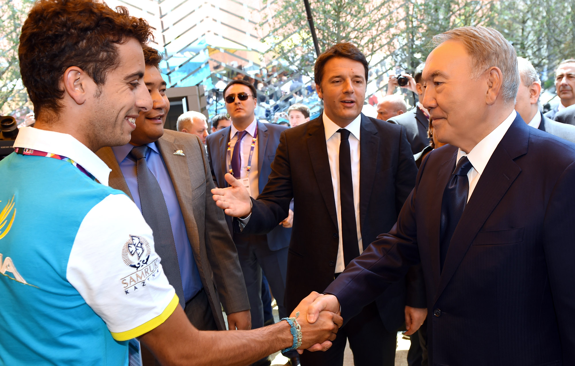 Вместе с премьер-министром Италии Маттео Ренци во время посещения казахстанского павильона на международной выставке EXPO-2015 в Милане. © akorda.kz