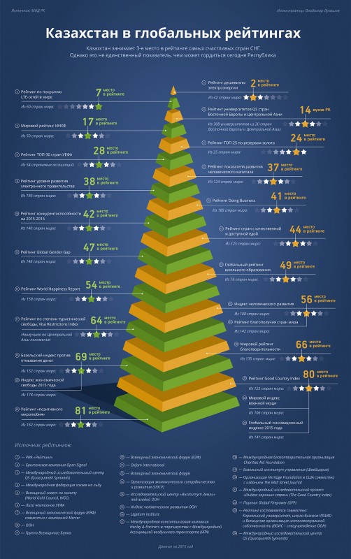 "14 декабря 2015 года Организацией Объединенных Наций был опубликован очередной Доклад о человеческом развитии (Human Development Report), который содержит отчет по Индексу человеческого развития (Human Development INDEX). Согласно новому докладу, публично представленному в столице Эфиопии Аддис-Абебе, рейтинг Казахстана поднялся на 14 позиций - до 56-го места", - говорится в сообщении.