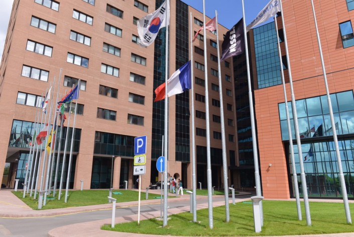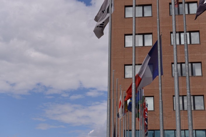 Цветы у французского консульства в Алматы.