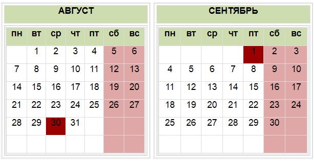 30 августа казахстанцы не будут работать, так как на эту дату намечено празднование Дня Конституции, который в этом году выпадает на среду. 31 августа последует рабочий день.