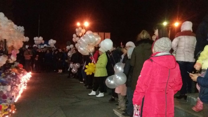 На акции было много детей. Но никто не шумел и не бегал. Даже малыши подолгу смотрели на свечи и шары и никто не плакал. Люди приходили семьями. Многие только сегодня рассказали детям о том, что случилось с их сверстниками в Кемерово.