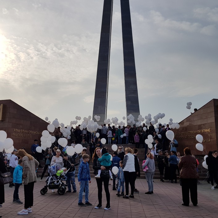 Жители Талдыкоргане тоже почтили память жертв трагедии в Кемерово. С утра во многих популярных группах были разосланы сообщения об акции на центральной площади города, где каждый мог прийти и почтить память погибших минутой молчания и запуском в небо белых шаров. Многие пришли на площадь семьями и с детьми.