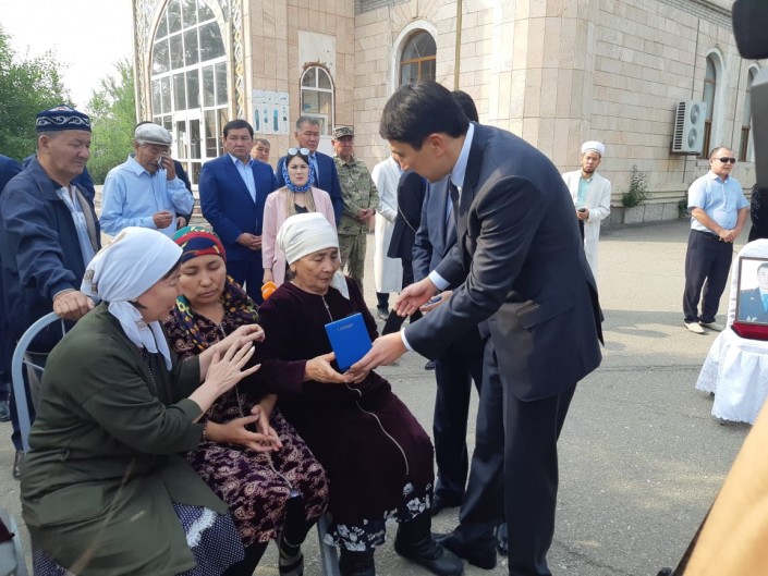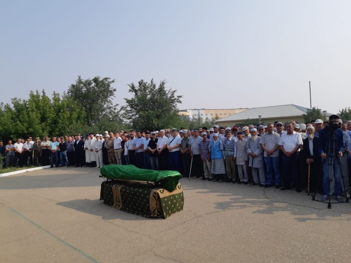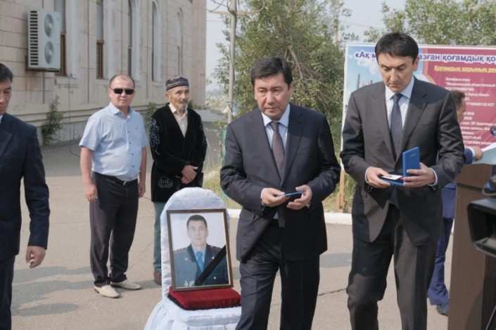 В траурной церемонии принял участие министр экологии, геологии и природных ресурсов Магзум Мирзагалиев и аким Карагандинской области Ерлан Кошанов. Они выразили соболезнования семье погибшего инспектора, передав его близким государственную награду - орден "Айбын" І степени, присужденный Президентом Касым-Жомартом Токаевым за мужество и самоотверженность, проявленные при исполнении служебного долга.