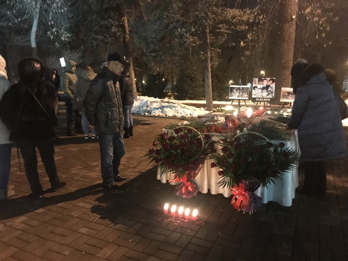 В Таразе жители тоже собрались, чтобы почтить память погибших сестер. Около 17.00 на аллее возле памятника влюбленным собрались горожане, представители мечети и русской православной церкви, представители партии и управлений акимата.