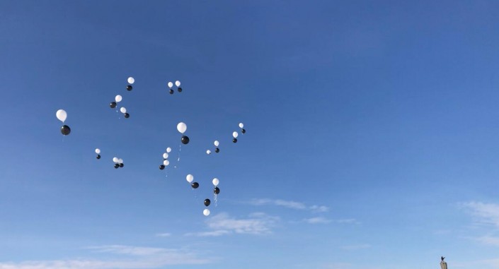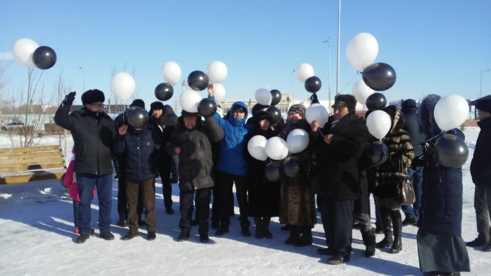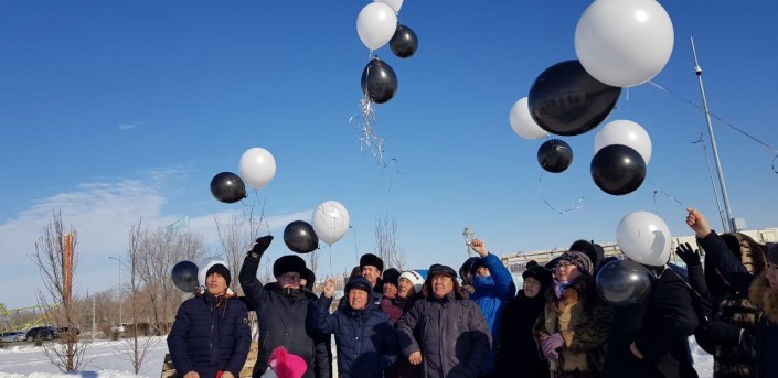 В Актобе в память о погибших в пожаре сестрах запустили в небо черные шары.