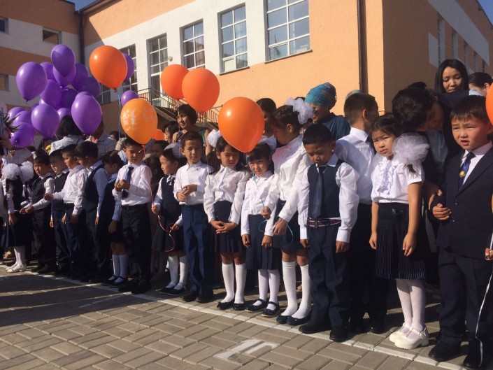 Министр выступил перед детьми на торжественной линейке в средней школе № 80 в Астане.