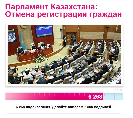 Казахстанские пользователи Интернета начали сбор подписей против новых правил, касающихся временной регистрации граждан. Текст обращения был размещен на днях на сайте Avaaz.org.