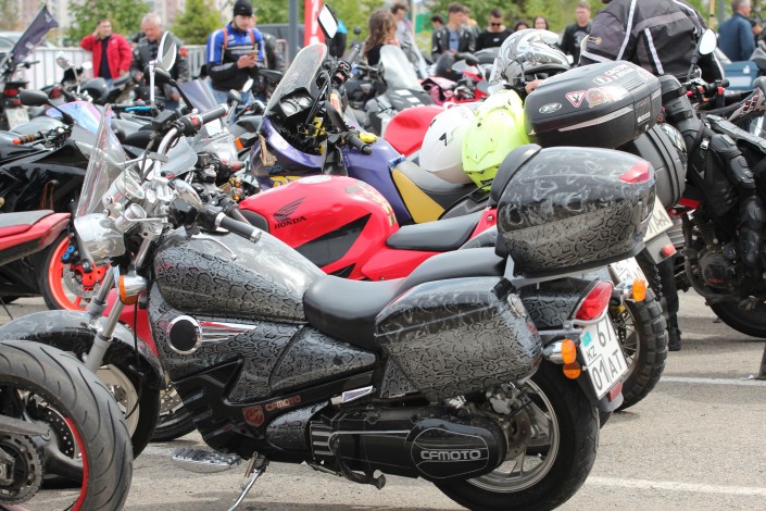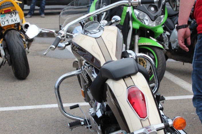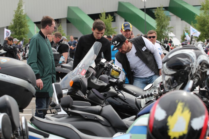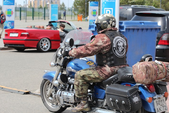 На площади перед стадионом "Астана Арена" гостей встречают рев двигателей и запах шашлыка. По словам организаторов, в фестивале принимают участие более 400 мотоциклистов, без учета пассажиров.
