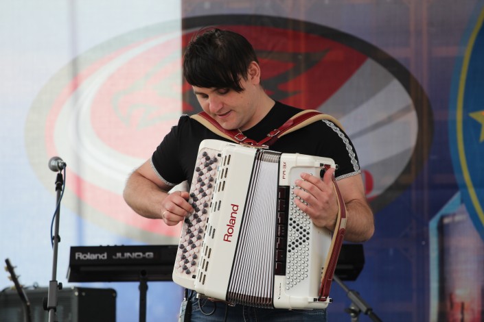 Тем временем на сцене выступают музыканты и проводятся конкурсы.