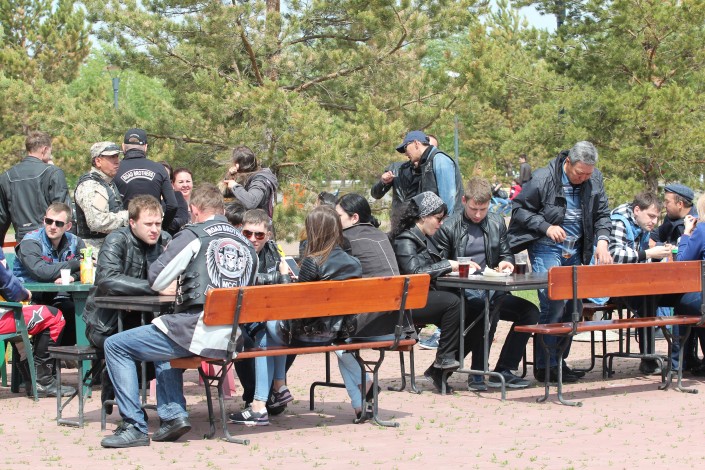 Здесь же, на площади, байкеры могли перекусить и приобрести детали для своих железных коней. Как ни странно, несмотря на брутальный вид большинства гостей, алкоголя здесь замечено не было.