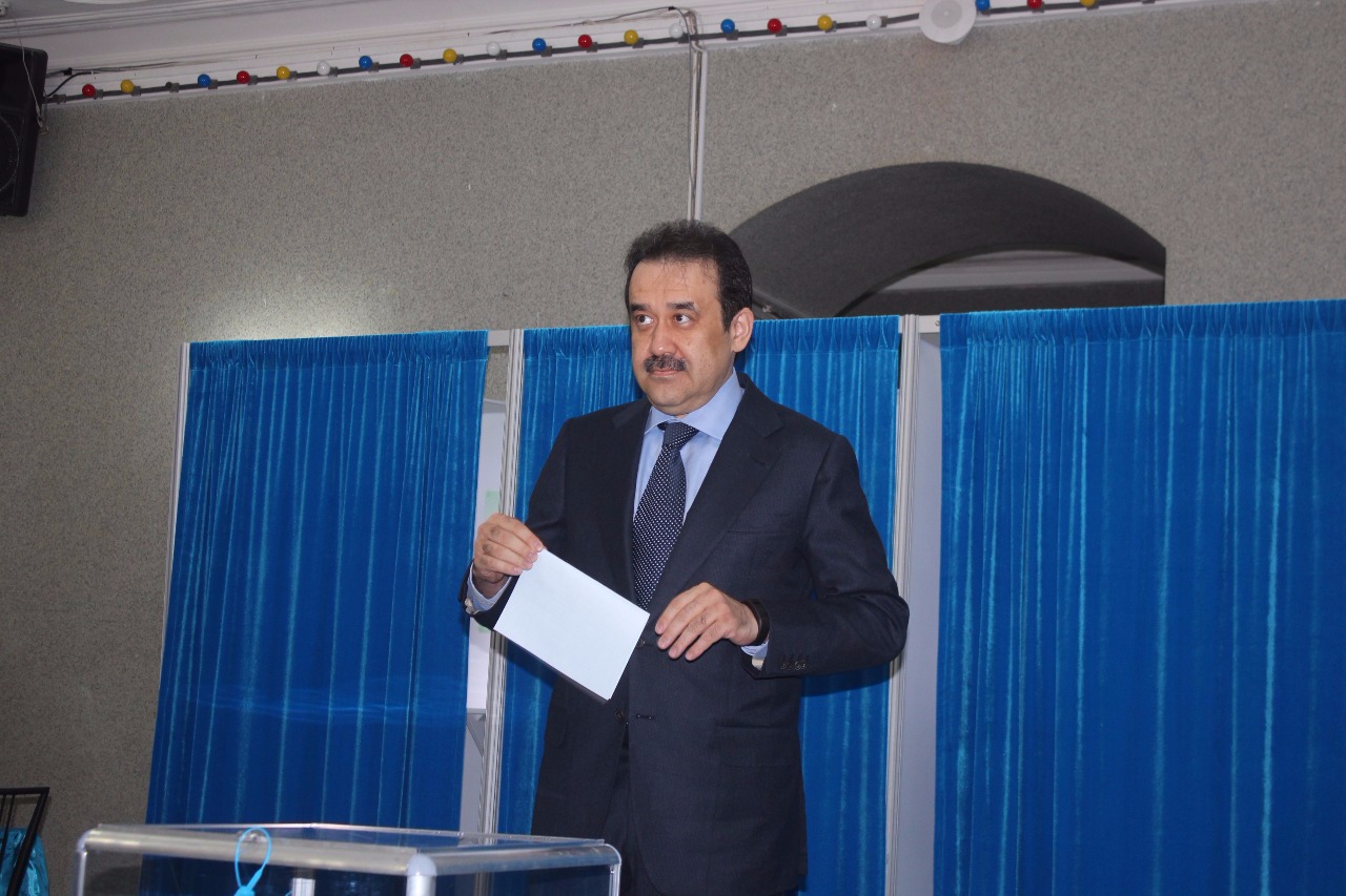 Во Дворце школьников сегодня с утра голосовали заместитель премьер-министра Казахстана Бердибек Сапарбаев, глава аэрокосмического комитета Министерства по инвестициям и развитию Талгат Мусабаев.
