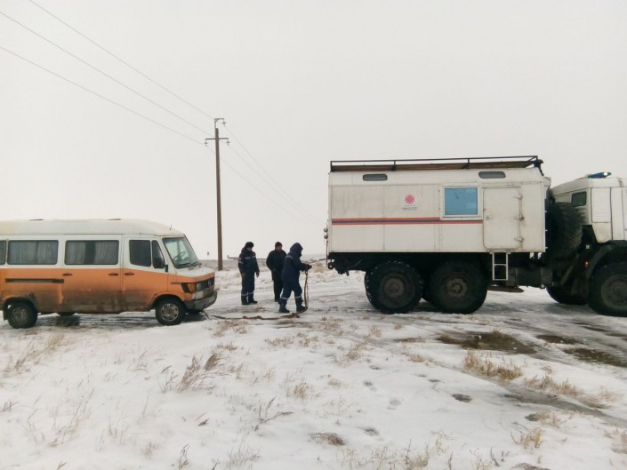 Кроме того, в 120 километрах от Жезказгана в результате гололедных явлений на трассе остановился пассажирский автобус сообщением Караганда - Жезказган. Для эвакуации пассажиров из Жезказгана на место направлен специальный транспорт повышенной проходимости (вахтовка) специализированной пожарной части № 42 службы пожаротушения и аварийно-спасательных работ ДЧС Карагандинской области.