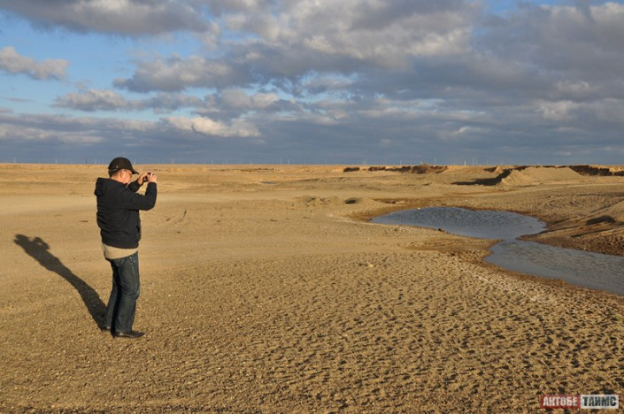 Доцент кафедры экологии университета имени Жубанова Акылжан Телеуов - один из участников проекта по спасению озера. Ученый показал журналистам фотографии водоема. На снимках отчетливо видно, как озеро стремительно мелеет. От моста, который когда-то служил переправой через водоем, остались одни торчащие столбы на пустынной местности. Раньше глубина озера достигала 15-20 метров. Сейчас не найти места глубже двух метров. Из-за недостатка воды началось заиливание.