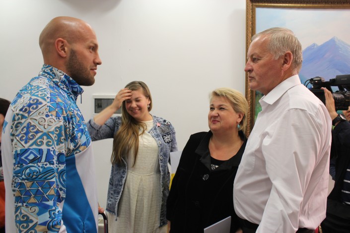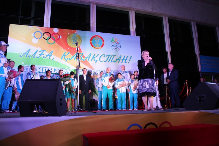 По ее словам, большие достижения Левита в спорте и на Играх-2016 в частности являются достижением не только родных спортсмена. "За каждым чемпионом, говорят, стоит сильная мама. Но ведь за ним стоит не только сильная мама, за ним стоят сильная команда тренерского штаба, Федерация бокса, лично аким города Астаны. Это тоже большая честь и поддержка. Дорогие наши дети, наши сыновья, вы сегодня - истинные победители, истинные олимпийцы. Мы любим вас, мы гордимся вами. Ну а всем болельщикам я хочу поклониться низко в ноги за поддержку и признание", - отметила Татьяна Левит и поклонилась в сторону зрителей, пришедших на торжественную встречу олимпийцев.