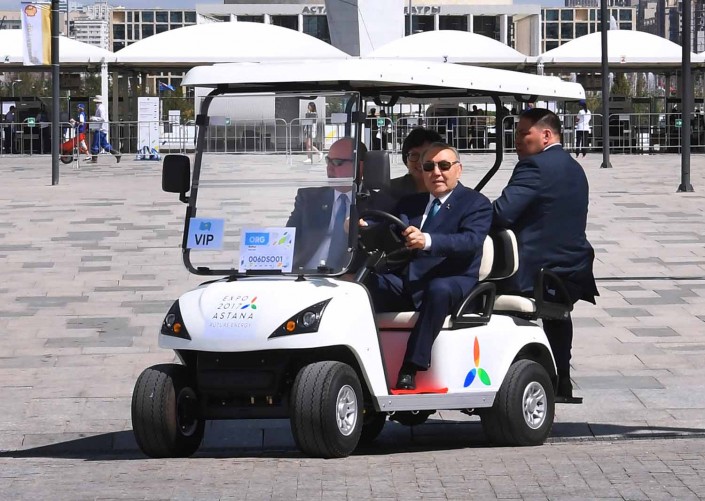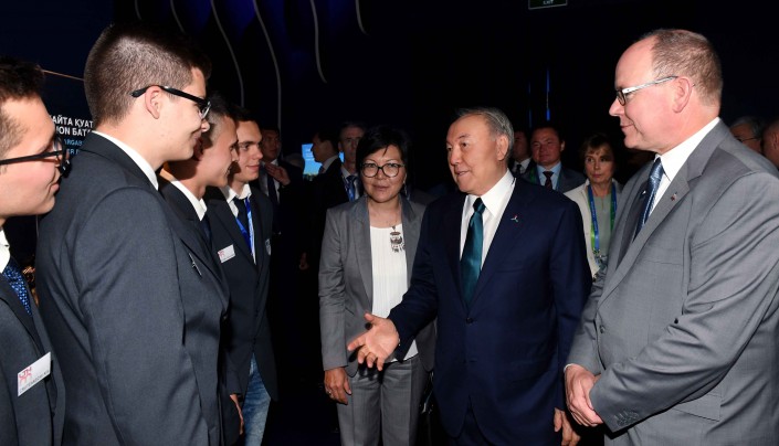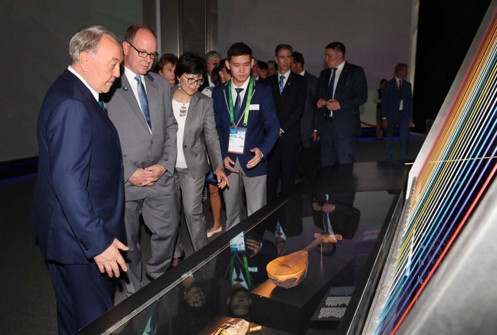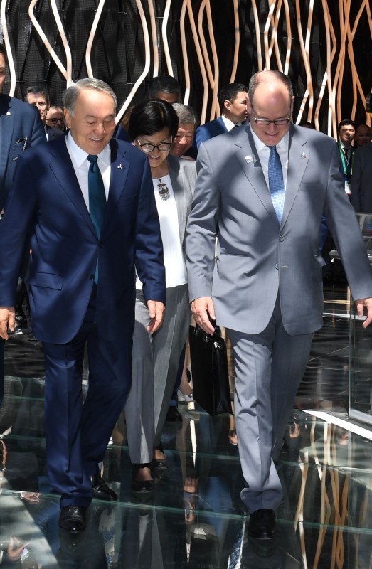 В завершение посещения павильона княжества Нурсултан Назарбаев оставил запись в книге почетных гостей и показал Альберу II национальный павильон Казахстана "Нур Алем". Здесь лидеры двух стран ознакомились с методом подземного скважинного выщелачивания урана, интерактивным макетом термоядерного реактора "Токамак" и другими экспозициями, посвященными культуре и истории Казахстана.