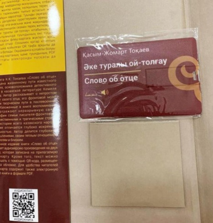 Уали рассказал, что эта книга вышла с использованием современных технологических возможностей. В издании двуязычную аудиоверсию произведения можно прослушать с помощью QR-кода на обложке. Для удобства читателя также во флеш-карту включена электронная версия произведения в формате PDF.