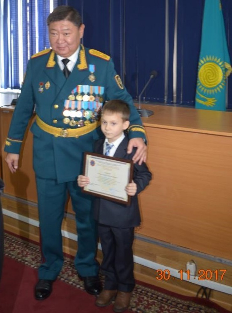 Кирилл и Данил с начальником Департамента по чрезвычайным ситуациям Алматы Сериком Аубакировым