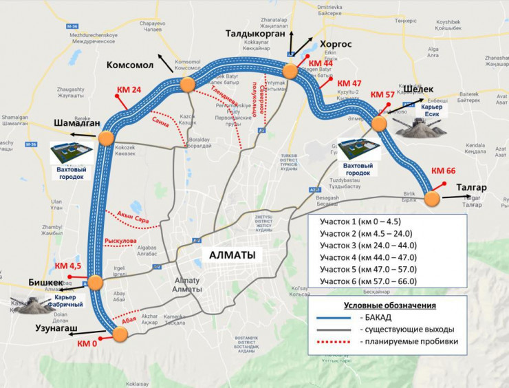 Протяженность Большой Алматинской кольцевой автомобильной дороги составит 66 километров.