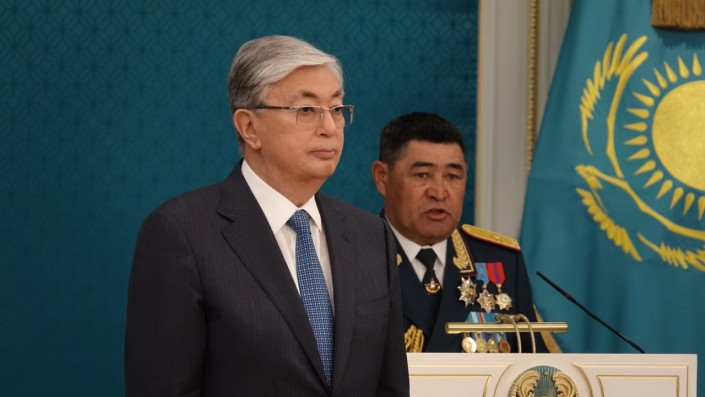"Уважаемые защитники Отечества! Вы достойно выполняете свой долг, сохраняете верность присяге. Вы прилагаете все силы, рискуете жизнью ради спокойствия казахстанцев, каждый из вас является образцом безупречной службы нашей родине. Каждого из вас можно назвать гордостью Казахстана. Ваш профессионализм, боевая выучка, самоотверженность, готовность к подвигу будут служить примером для подрастающего поколения", - обратился к награжденным Касым-Жомарт Токаев.