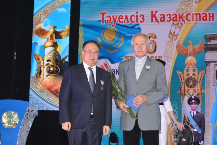 Акмолинцам вручены награды и в Астане. Орденами "Айбын" II степени награждены начальник Департамента полиции Акмолинской области Е. Саденов, председатель областного Совета ветеранов Г. Толегул.