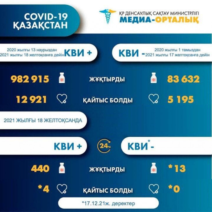 За прошедшие сутки (18 декабря) в Казахстане зарегистрировано 440 новых случаев заболевания коронавирусной инфекцией.