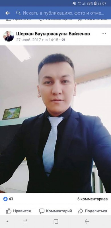 Сообщается, что сейчас Шерхан Байзенов в отпуске до 12 августа. Он находится под подпиской о невыезде. В средней школе села Белес Байзенов работает с 2014 года. Он окончил колледж в Уральске.