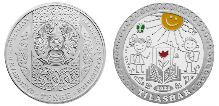 • из серебра 925/1000 пробы качеством proof, массой 24 грамма, диаметром 37 миллиметров, номиналом 500 тенге, тиражом 5 000 штук;